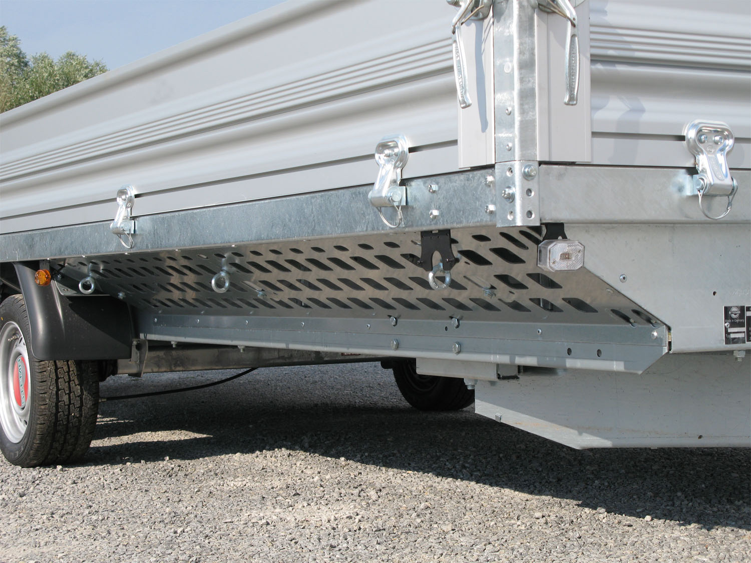 - Eloxierte Aluminiumbordwände (34,5 cm hoch) mit robusten Breitbandscharnieren