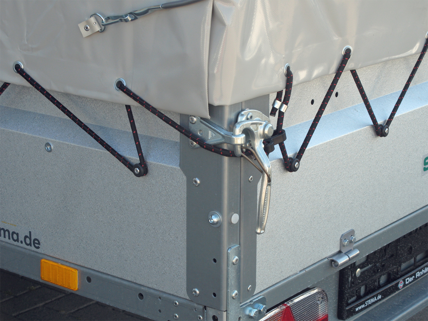 Die GALVALUME-Bordwände mit stabilen Stahlguss-Winkelhebelverschlüssen garantieren eine sichere Ladung. Große, teilversenkbare Verzurrösen ermöglichen eine zuverlässige Befestigung. Der Boden besteht aus rutschfestem, wasserfestem Siebdruckholz, das besonders strapazierfähig ist.