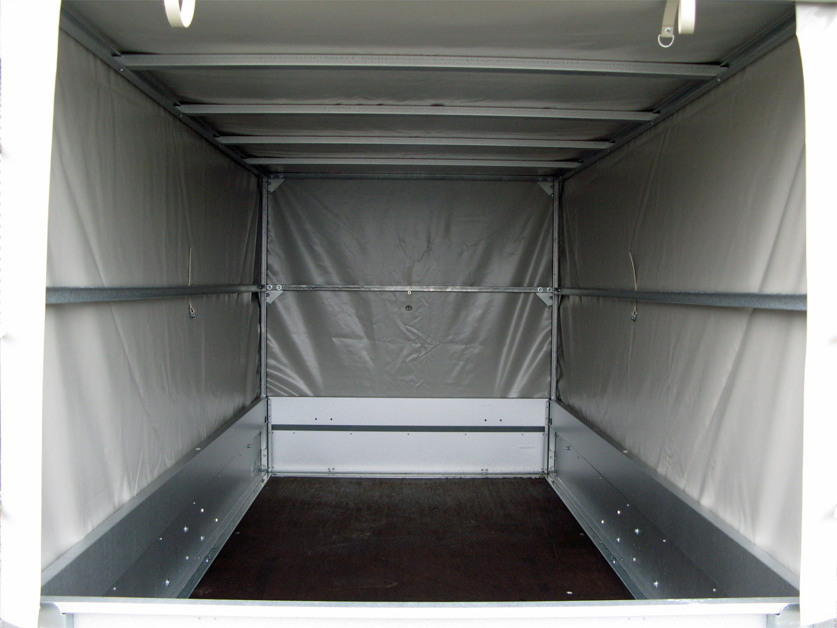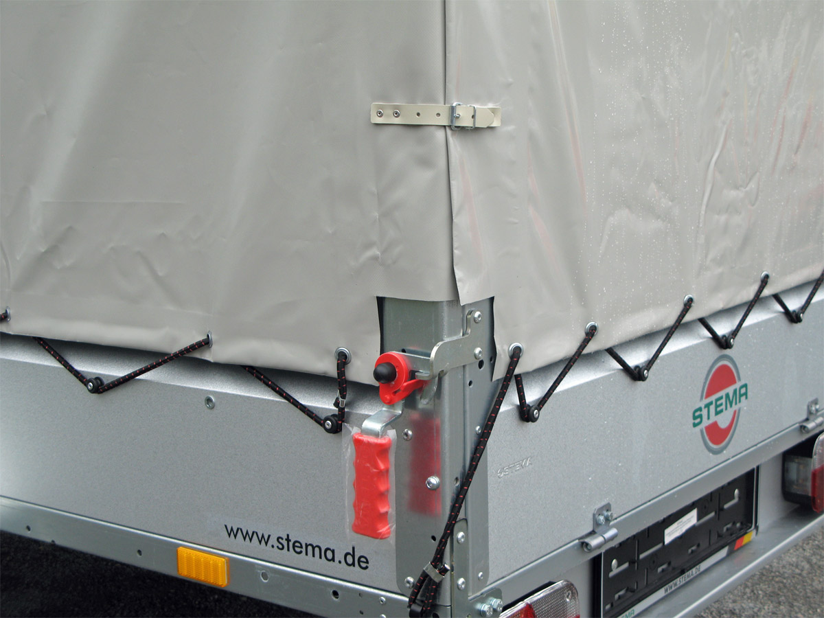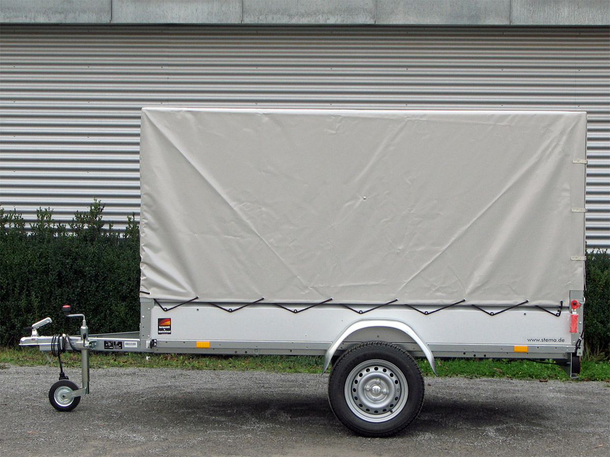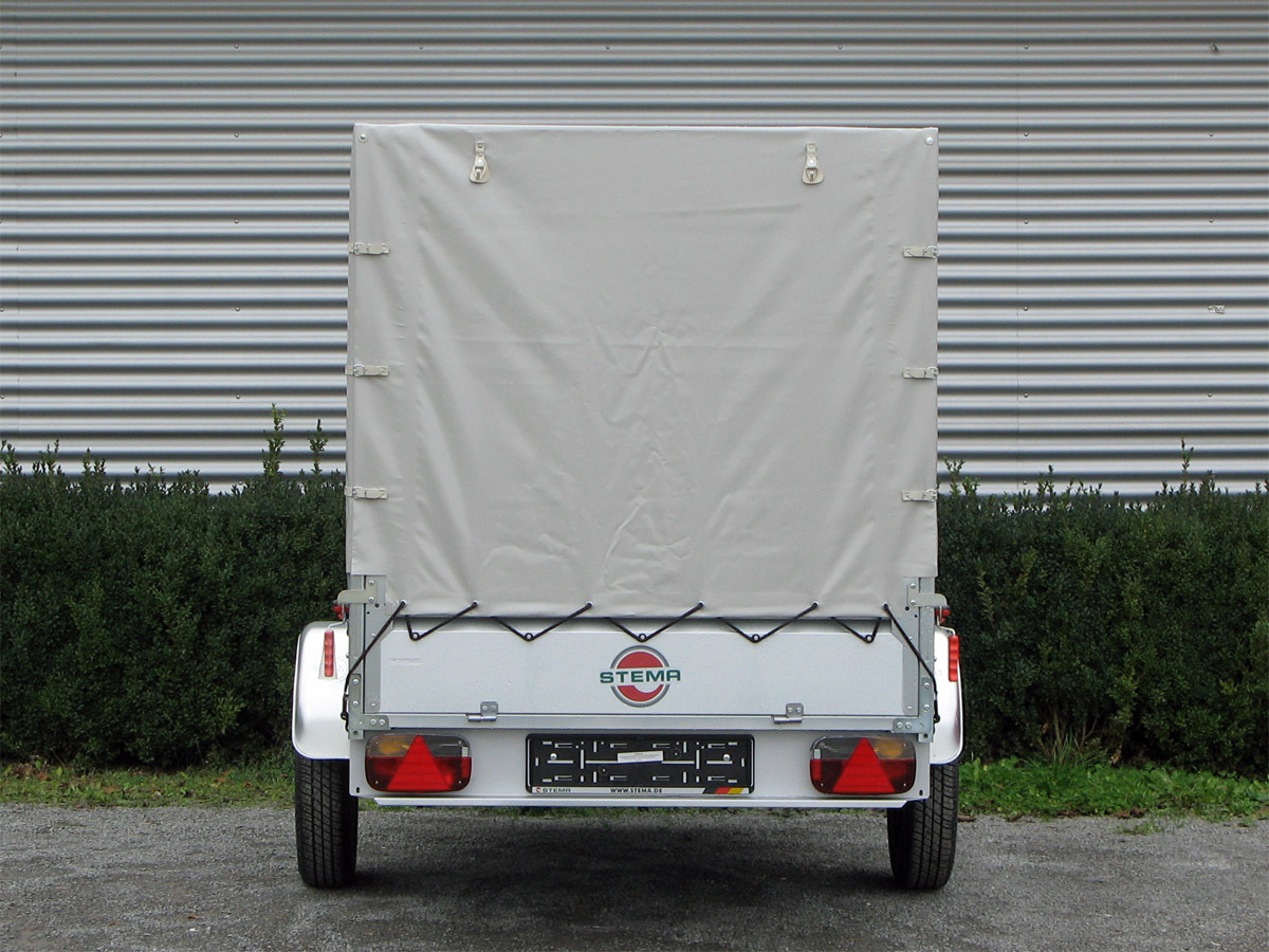 Der STEMA STL 750 O1 7.5-25-13.1 überzeugt durch seine stabile Konstruktion und optimale Straßenlage. Der mitgelieferte Planenaufbau ist lose beigelegt und hinten zum Öffnen, mit einer Innenhöhe von 135 cm, ideal für flexible Beladung.
