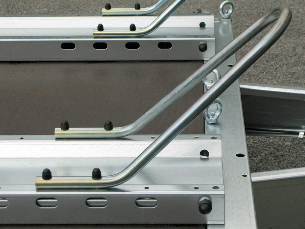 - Sechs Verzurrösen für sichere Fixierung der Verzurrbügel