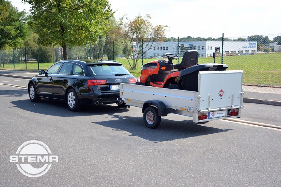 Die rundum abnehmbaren doppelwandigen GALVALUME®-Bordwände (mit Ausnahme der festen Vorderwand) bieten Flexibilität beim Beladen. Der Anhänger ist mit einem Stützrad, einer STEMA Sicherheits-V-Deichsel und einer Gummifederachse mit Einzelradaufhängung für optimale Straßenlage ausgestattet. Zusätzlich verfügt er über ein wartungsfreies Kompaktradlager und eine moderne Multipoint III-Beleuchtung mit Nebelscheinwerfer.