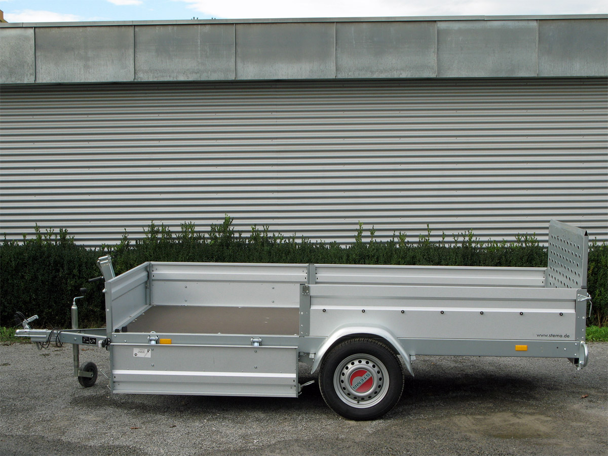 Der STEMA STP O1 7.5-30-13.1 REX 30 ist ein vielseitiger Kastenanhänger mit einer stufenlos neigbaren Ladefläche, ideal für flexible Transportanforderungen. Die seitlichen Bordwände sind geteilt, während die Rückwand gleichzeitig als Auffahrrampe nutzbar ist und eine Länge von 700 mm aufweist.