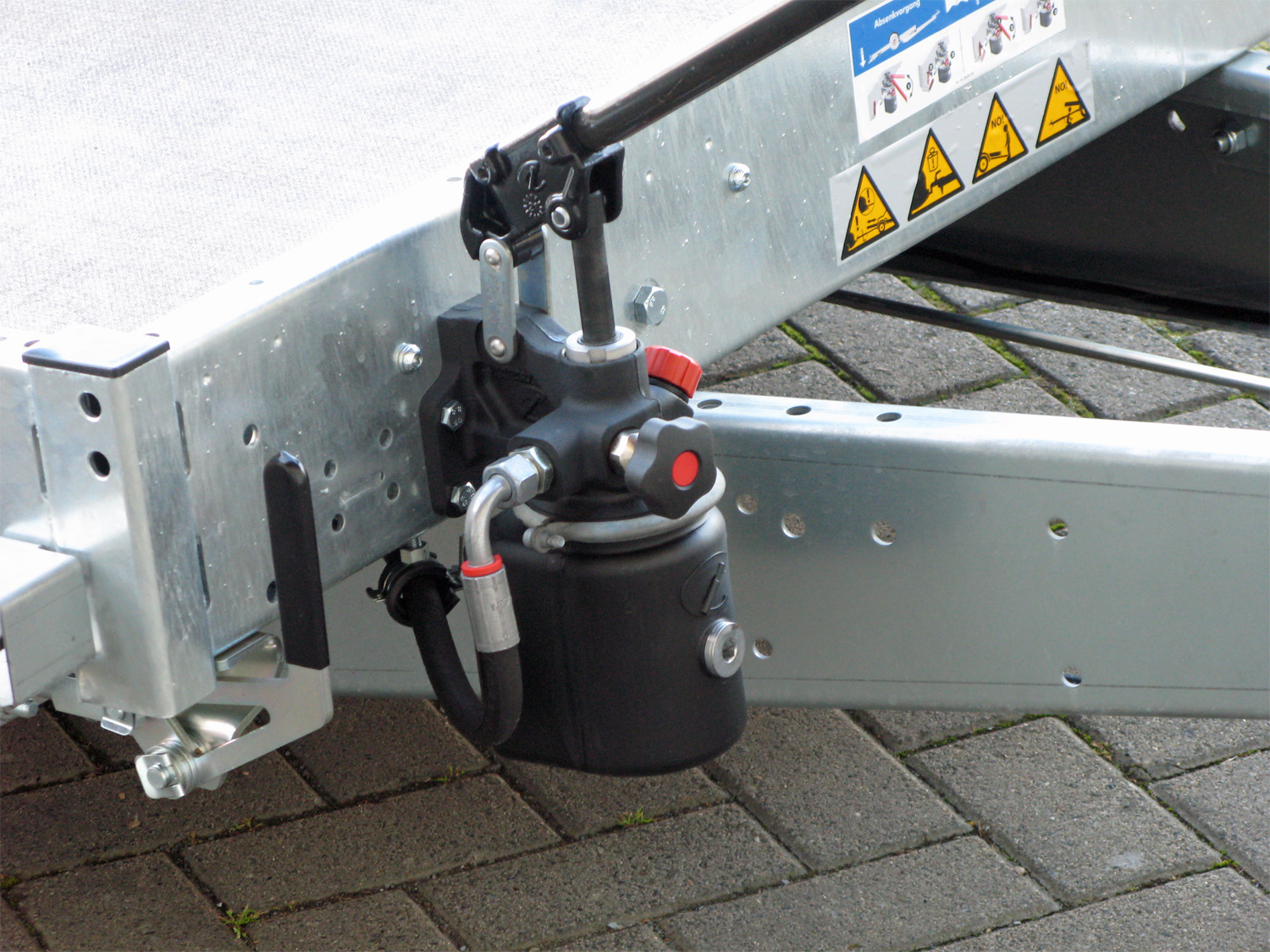 | Hydraulik | Inklusive hydraulischer Handpumpe, Seitenreling (Höhe 10 cm) und Verzurrschiene |