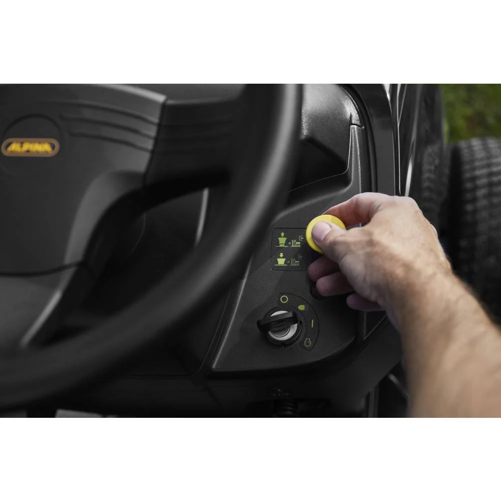 - Zentrale Schnitthöhenverstellung mit 7 Stufen, von 25 bis 80 mm