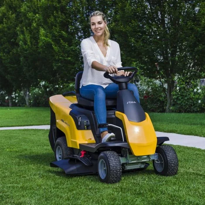 Mit dem Stiga Combi 1066 HQ wird das Mähen deines großen Gartens mit einer Rasenfläche von bis zu 1.500 Quadratmetern zu einer komfortablen Aufgabe. Dies gelingt dir mit dem 66 Zentimeter breiten Mähdeck deutlich schneller als mit einem normalen Rasenmäher, während du bei dem Mähen entspannt auf dem Sitz Platz nimmst. Durch die niedrige Front hast du dabei stets einen leichten Überblick und manövrierst das Gerät auch durch verwinkelte Passagen oder um Objekte herum. Produkteigenschaften Produktart Aufsitzmäher / Mulchmäher Auswurf (Richtung) Seitenauswurf / Heckauswurf Leistung 4,52 PS Schnittbreite 66 cm Schnitthöhe 30 – 76 mm Volumen d. Fangbehälters 150 Liter Antriebseigenschaften variable Geschwindigkeit Mit dem cleveren Hydrostatantrieb variierst du die Geschwindigkeit nur mit dem Pedal, sodass du die Übersetzung stufenlos einstellst. Darüber hinaus passt du die Schnitthöhe in sechs Stufen an die gewünschte Höhe zwischen mindestens 30 Millimeter und maximal 76 Millimetern ein. Vielfältige Möglichkeiten den Rasen zu mähen Der Combi 1066 HQ kommt mit einem praktischen 4-in-1-System. Dies bedeutet, dass du den Rasenschnitt direkt in dem 150 Liter großen Grasfangkorb sammelst, den Heck- oder Seitenauswurf verwendest oder auf die Mulchfunktion zurückgreifst, um den geschnittenen Rasen zugleich als nützlichen Dünger zu nutzen. Das entsprechende Mulchkit ist in dem Lieferumfang inbegriffen