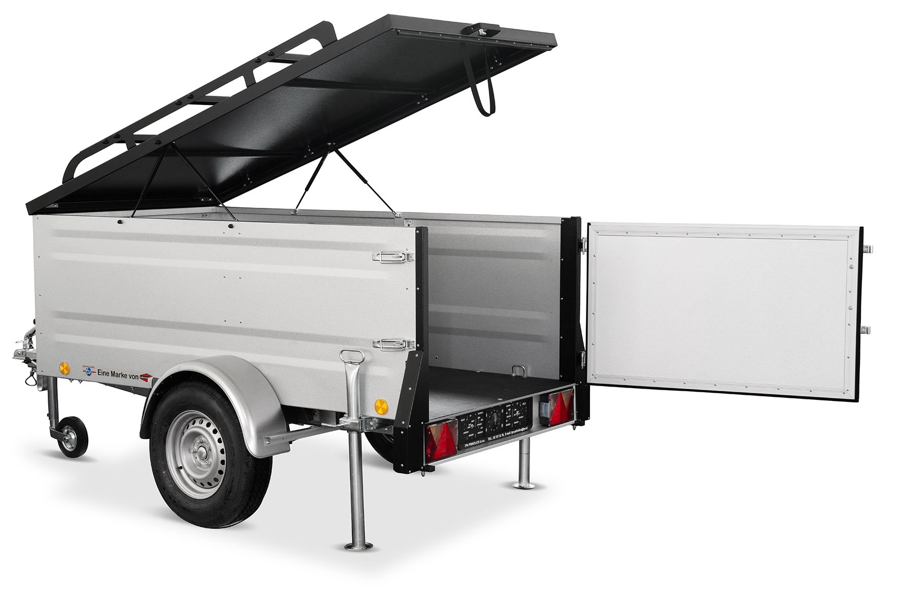 Dank seiner Aluminium-Zinkbeschichtung bietet der Anhänger eine hohe Widerstandsfähigkeit. Die stabile Konstruktion sorgt für einen sicheren Transport von Lasten, während die verstärkten Kotflügel begehbar sind.
