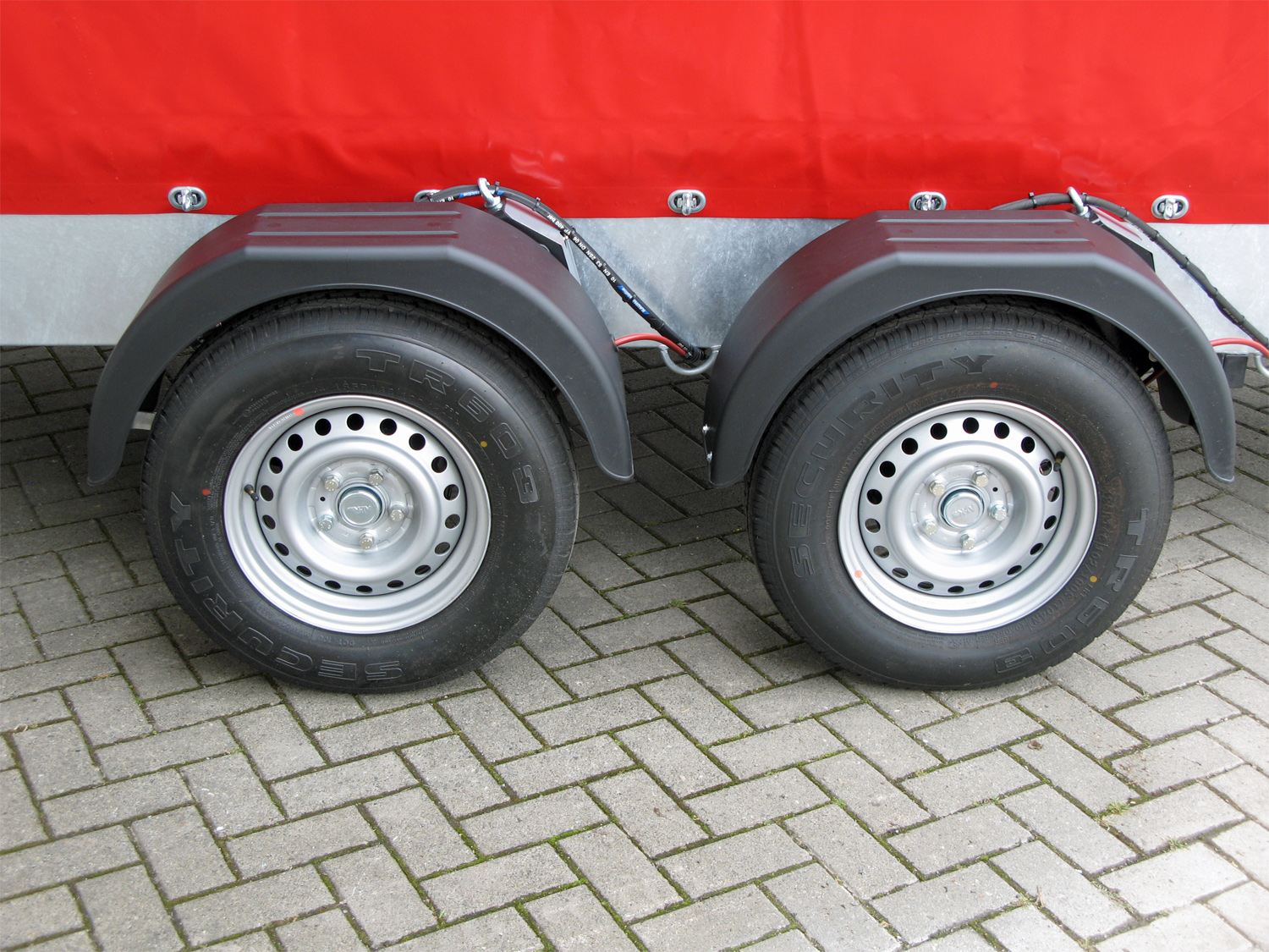 | Planenaufbau | 2.280 mm hoch, rot, mit Aufrollfeder hinten |