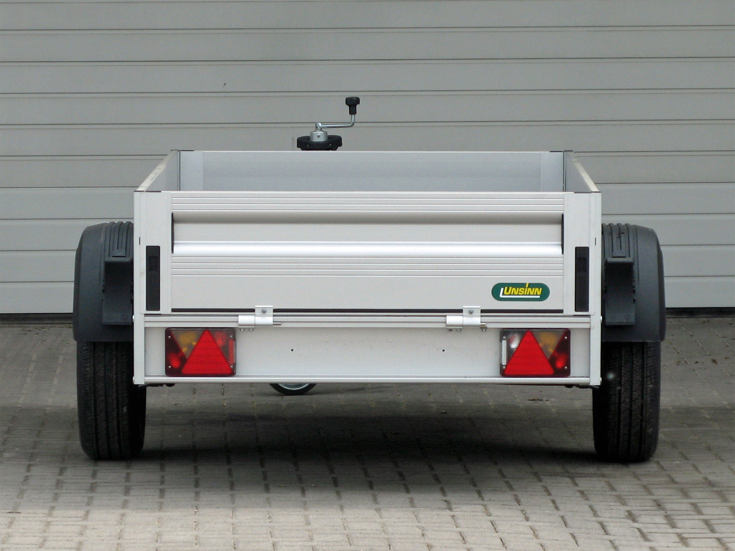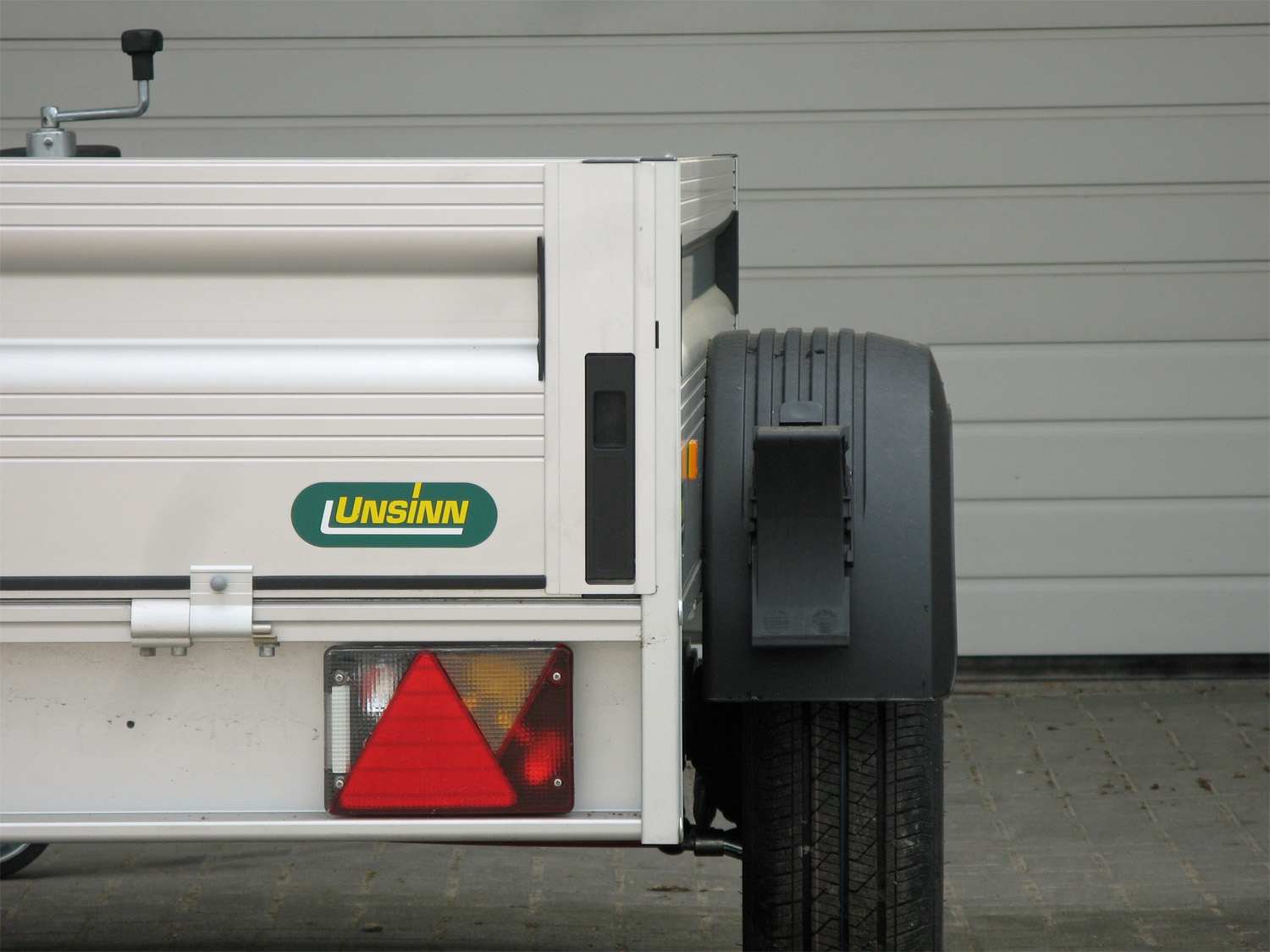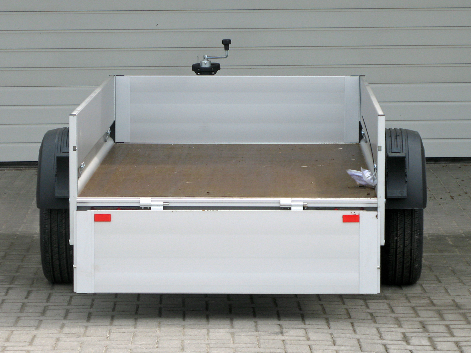 - Aluminium-Hohlprofil-Bordwände, eloxiert, hinten abklappbar mit versenkten Verschlüssen