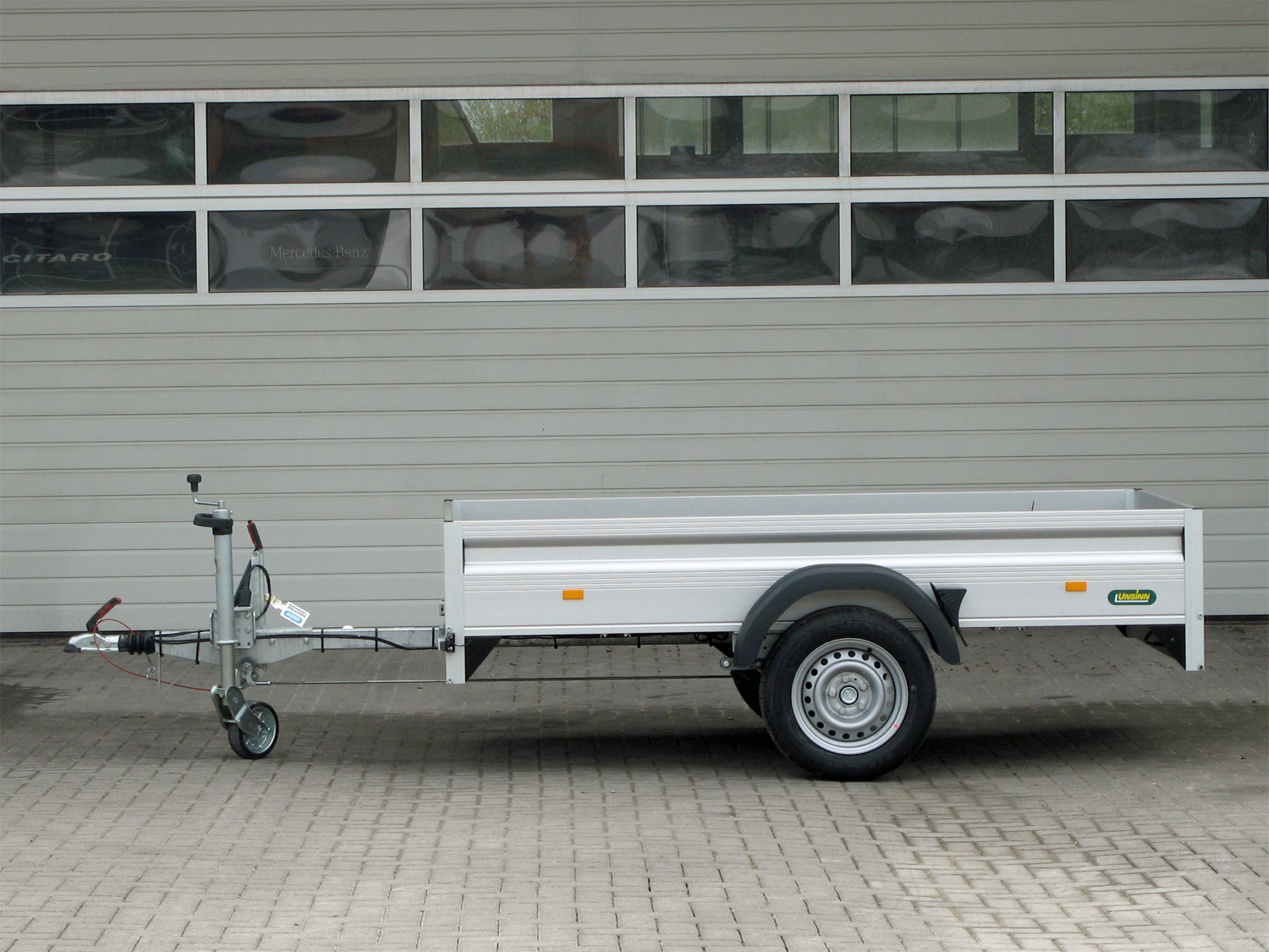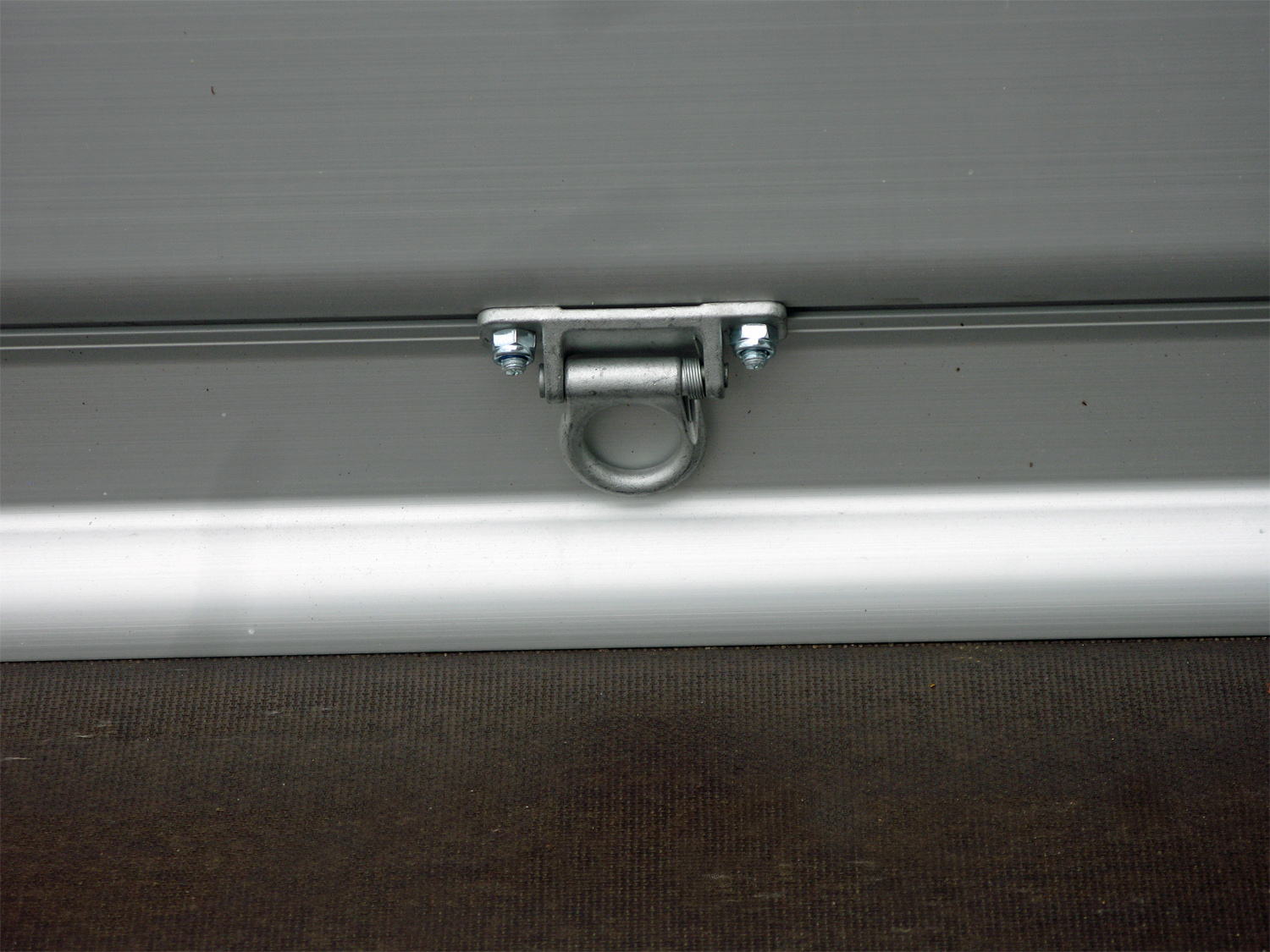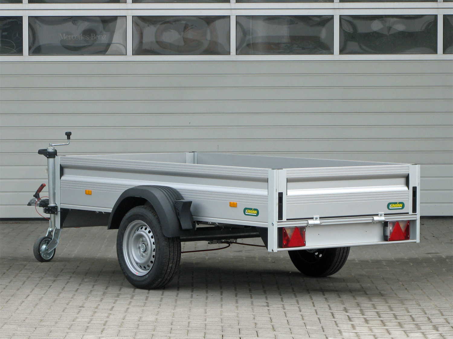 - Aluminium-Hohlprofil-Bordwände, eloxiert, hinten abklappbar mit versenkten Verschlüssen