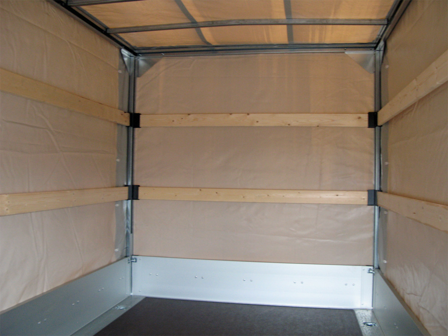 - Ladefläche aus mehrfach verleimter Siebdruckplatte (18 mm), rutschhemmend und wasserfest